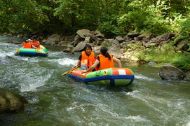 2、漂流船通过险滩时要听从岸边工作人员的指挥,不要随便乱动,应紧抓安全绳,收紧双脚,身体向船体中央倾斜;